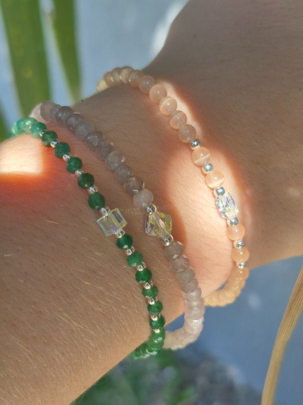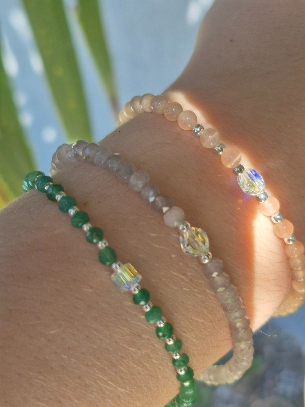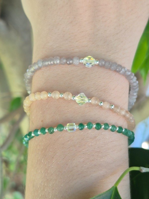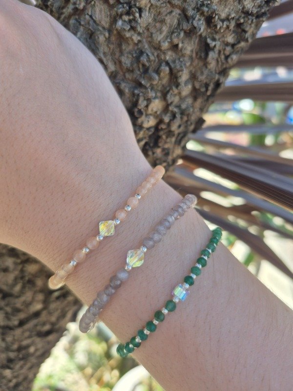 Pulsera de piedras naturales,cristal Sw y plata 925